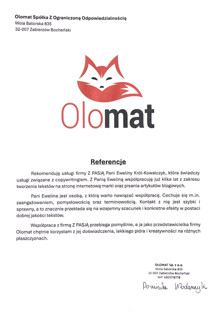 Zobacz referencje wystawione przez naszych Klientów